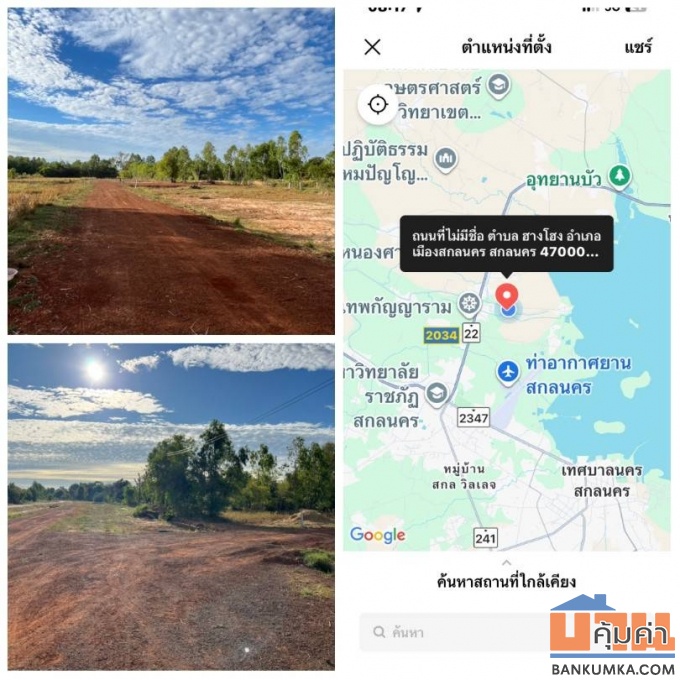 ขายที่ดินเปล่า ใกล้เทศบาลฮางโฮง อำเภอเมืองสกลนคร