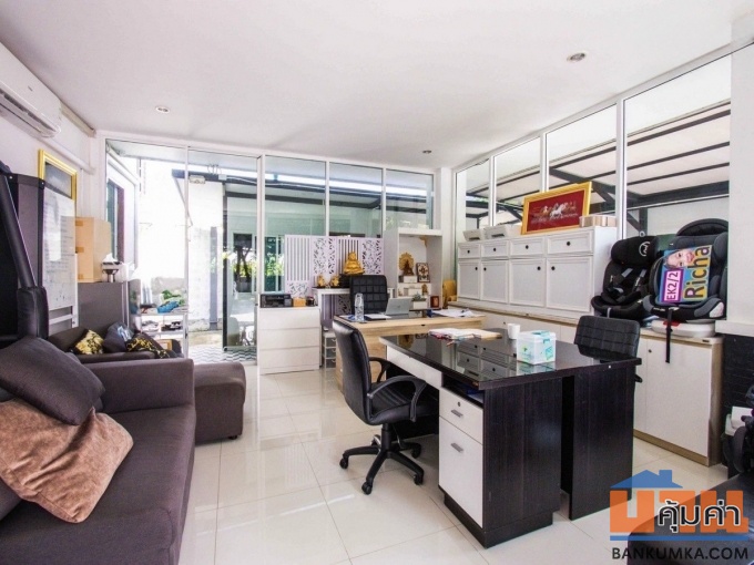 ขายบ้านแฝด หมู่บ้านบุรีรมย์ รามอินทรา-ซาฟารี เนื้อที่ 36.8 ตร.ว. 2 ชั้น 4 นอน 2 น้ำ ขาย 2,950,000 บาท