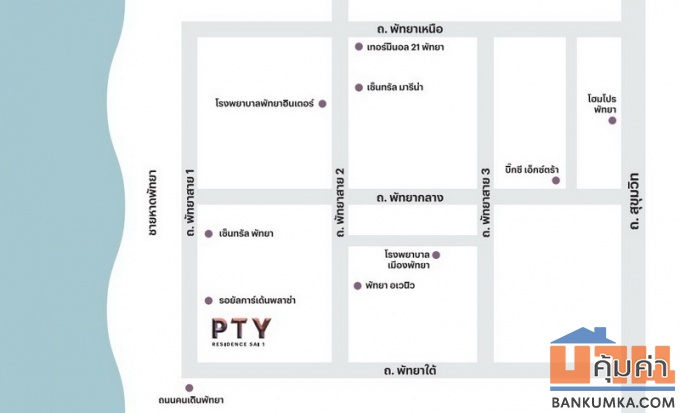 ที่ดิน ริมหาดกระทิงลาย(บางละมุง)พัทยา เนื้อที่่ 2-0-88 ไร่ แปลงหัวมุม ขาย 128,000,000 บาท