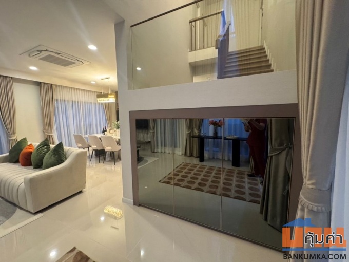 Luxury 2-storey detached house for rent, Burasiri Krungthep Kreetha project, Kempas house model, 65.10 sq m, last house, fully furnished, near Brighton International School.