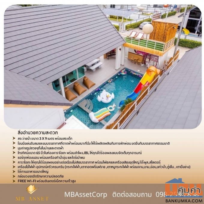 - สระว่ายน้ำ ขนาด 3 x 9 เมตร พร้อมสระเด็ก