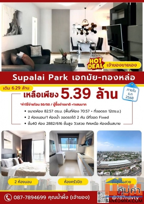 ขาย ศุภาลัย ซิตี้ รีสอร์ท รัชดา ห้วยขวาง ห้องใหญ่45ตรม เพียง2.69ล้าน ขาย 2,690,000 บาท