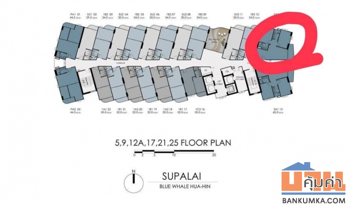 -ขายดาวน์คอนโด Supalai Blue Whale หัวหิน ชั้น 5 ทิศตะวันออก