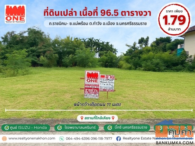 ขาย ที่ดิน ในเมืองนครเนื้อที่ 50.1 ตร.วา เหมาะสร้างที่อยู่อาศัย ขาย 1,000,000 บาท