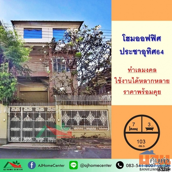 ขายโฮมออฟฟิศ3ชั้น ขนาด103ตรว. ซ.ประชาอุทิศ64 ทุ่งครุ ทำเลทอง ราคาพร้อมคุย