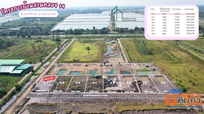 ขายที่ดินเปล่า ไร่ครึ่งไม่ถึงล้าน ทำเลดี ติดถนนเลียบคลอง14 อำเภอองครักษ์ จังหวัดนครนายก (เจ้าของขายเอง) ขาย 891,000 บาท