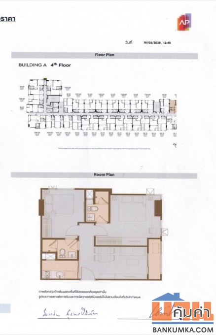 ตำแหน่งห้องชุด A4DM10 เนื้อที่ 52 ตร.ม. 2 ห้องนอน 2 ห้องน้ำ 1 ห้องรับแขก ชั้น 4 ตึก A ฟรี Digital Door Lock