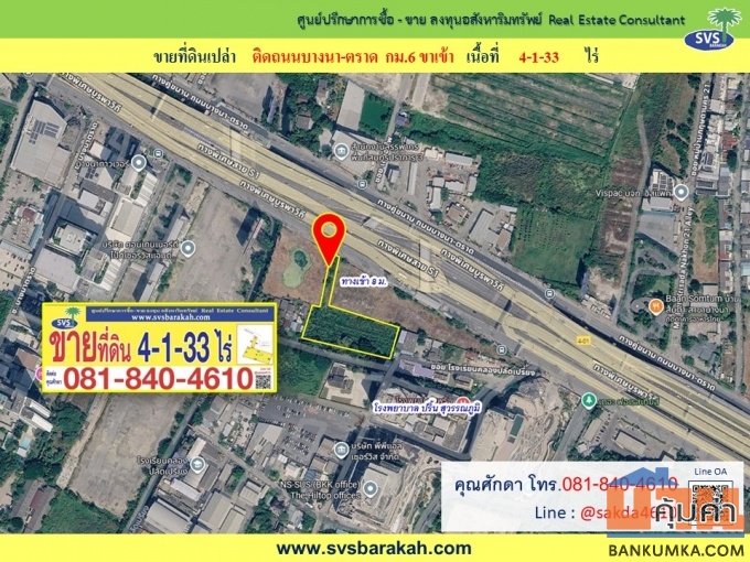 L-115 : ที่ดินถมเเล้ว + แปลงมุม 3-3-40 ไร่ ติดทางคู่ขนาน บางนา-ตราด กม.20 ฝั่งขาเข้า บางพลี ขาย 115,500,000 บาท