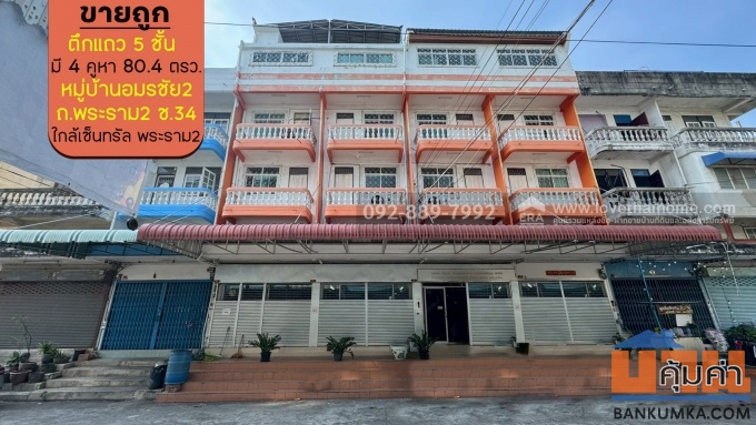 ขายตึกแถว5ชั้นหมู่บ้านอมรชัย2 ถนนพระราม2 ซอย34 มีทั้งหมด 4 คูหา พื้นที่ 80.4 ตรว. ราคาถูก ขายเพียง 16 ล้านบาท ใกล้เซ็นทรัล พระราม2