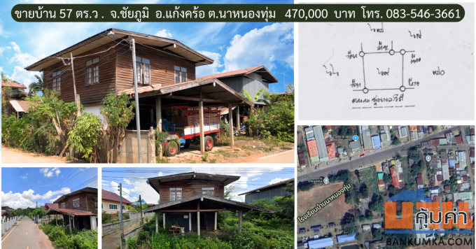 ขายถูก ที่ดิน 57 ตรงว.พร้อมบ้านไม้ ในชุมชน หลังโรงเรียนบ้านนาหนองทุ่ม ต.นาหนองทุ่ม อ.แก้งคร้อ จ.ชัยภูมิ