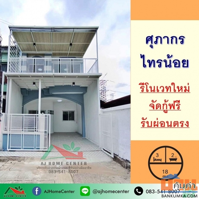 รีโนเวทใหม่ขาย1.69ล้าน ทาวน์เฮ้าส์18ตรว. ม.ศุภากร ไทรน้อย ฟรีโอน