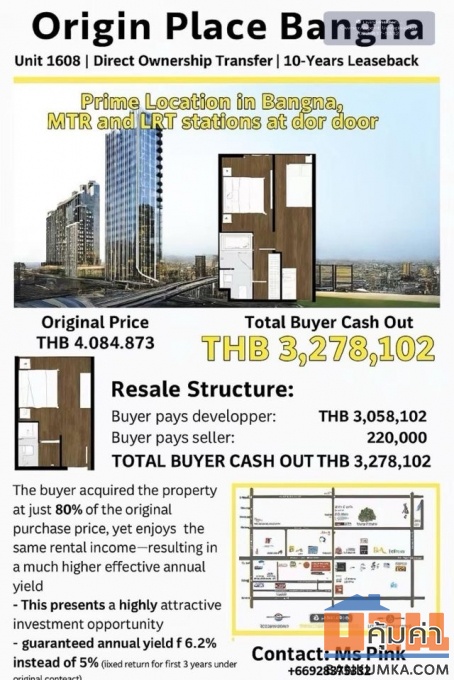 CM04395 ขายด่วน ขายดาวน์ คอนโด ออริจิ้น เพลส บางนา Origin Place Bangna ซอย บางนา-ตราด 48 แขวงบางนาใต้ เขตบางนา กรุงเทพมหานคร 10260