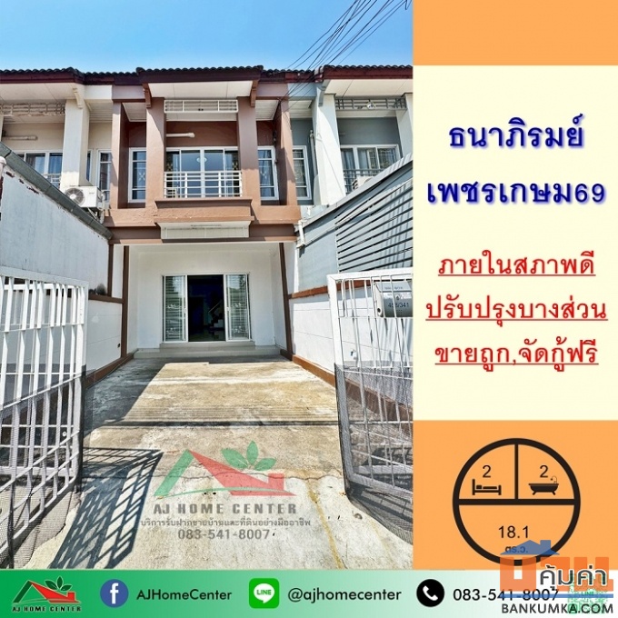 ขายถูก ทาวน์เฮ้าส์2ชั้น 18.1ตรว. ม.ธนาภิรมย์ เพชรเกษม69 สภาพดีพร้อมอยู่ จัดกู้ฟรี