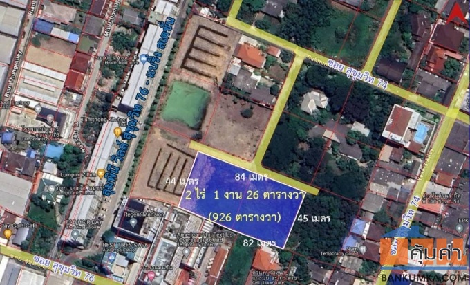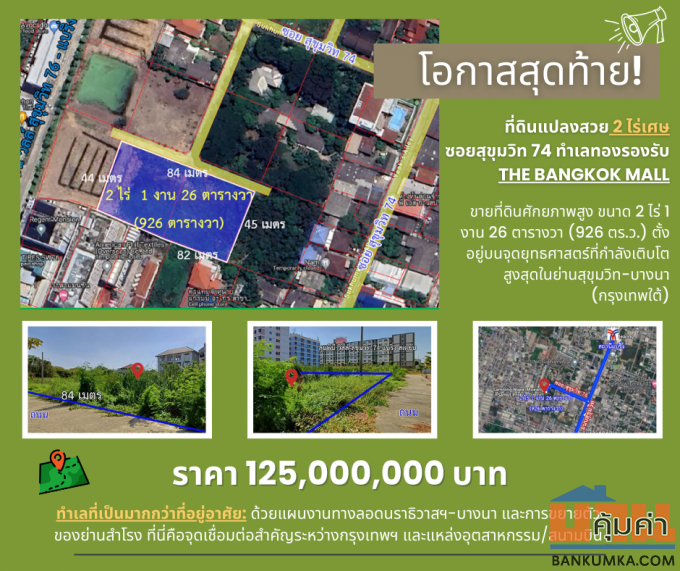 โอกาสนาทีทอง ที่ดินผืนใหญ่หน้ากว้าง 84 เมตร สุขุมวิท 74 ขาย 125,000,000 บาท