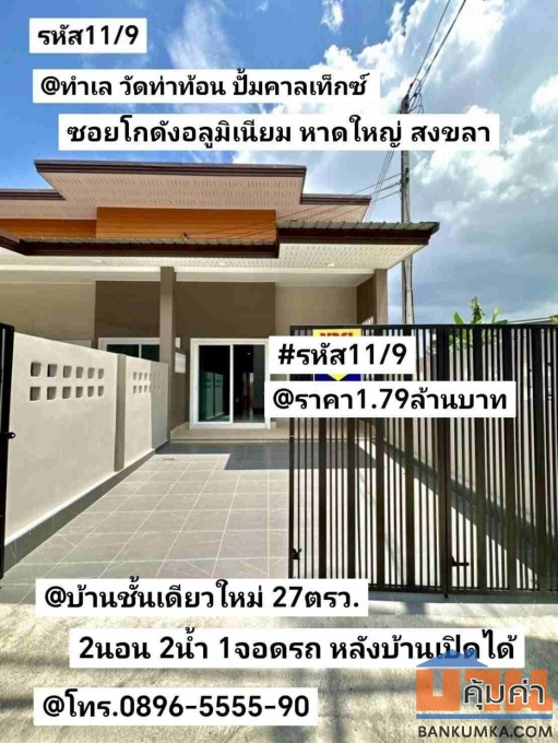 บ้านชั้นเดียวใหม่ วัดท่าท้อน ปั้มคาลเท็กซ์ ซอยโกดังอลูมิเนียม หาดใหญ่ สงขลา