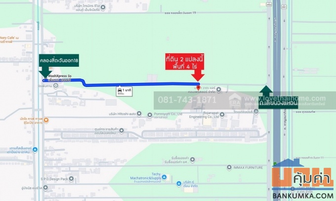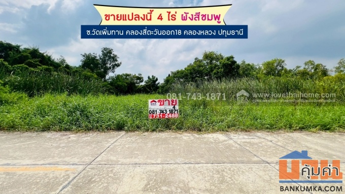 ขายที่ดิน คลอง 2 คลองหลวง ปทุมธานี ซอยบงกช 50 เนื้อที่ 1 ไร่ แปลงสวย ขาย 6,800,000 บาท