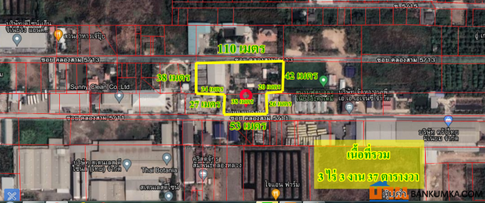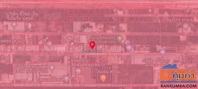 ที่ดินติดถนนซอยสาธารณะ 2 ด้าน คือซอยคลองสาม 5/11 (ซอยบุญธรรม) และซอยคลองสาม 5/13 (ซอยตาน้ำ) มีหน้ากว้างติดถนนซอย 5/11 ประมาณ 110 เมตร และหน้ากว้างติดถนนซอย 5/13 ประมาณ 53 เมตร