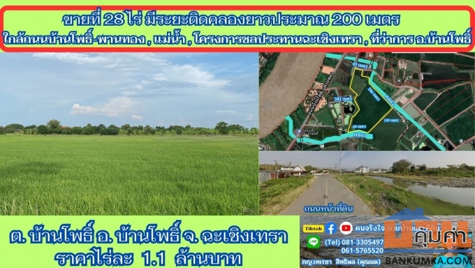 ขายที่ดินติดแม่น้ำบางปะกง 9 ไร่เศษ (ถมแล้วบางส่วน) ต.ท่าพลับ อ.บ้านโพธิ์ จ.ฉะเชิงเทรา ขาย 1,800,000 บาท/ไร่