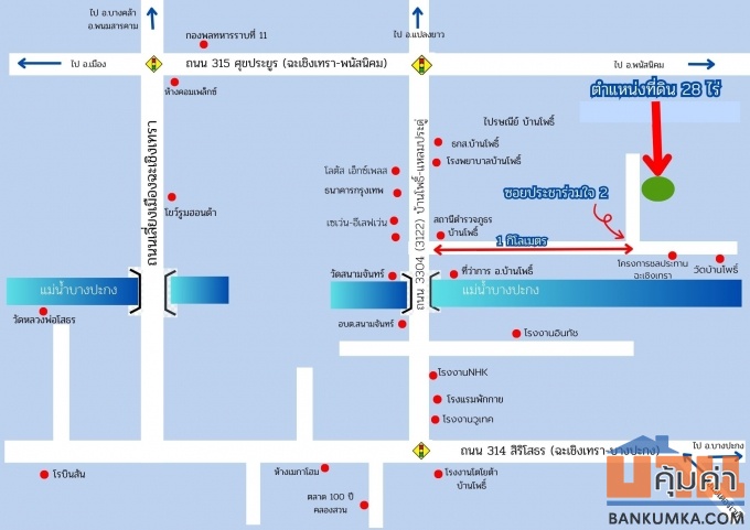 ขายที่ดิน ต.บางซ่อน อ.บ้านโพธิ์ จ.ฉะเชิงเทรา ขาย 390,000 บาท/ไร่