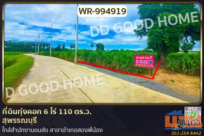 WR-994919 ที่ดินทุ่งคอก 6 ไร่ 110 ตร.ว. สุพรรณบุรี ใกล้สำนักงานขนส่ง สาขาอำเภอสองพี่น้อง