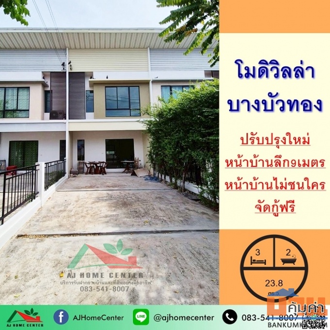 ขายถูก2.39ล้าน ทาวน์โฮม23.8ตรว. ม.โมดิวิลล่า บางบัวทอง ปรับปรุงใหม่ ฟรีค่าโอน
