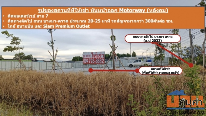 หมายเหตุ: ถนน ส.ป.2032 ด้านหน้า จะเริ่มทำการปรับปรุง การสัญจร จะสะดวก และจะเพิ่มมากขึ้น หน้ากว้างด้านมอเตอร์เวย์ 32 เมตร, ด้าน ส.ป.2032 35 เมตร
