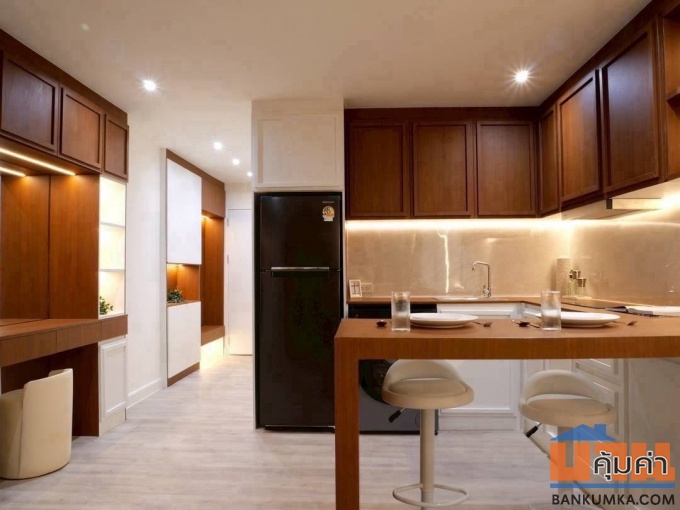 รีโนเวทใหม่ทั้งห้อง ดีไซน์เรียบหรูสไตล์โมเดิร์นอบอุ่น ใช้วัสดุคุณภาพ พื้นไม้ SPC ครัวบิ้วอินพร้อมเตาไฟฟ้าและเครื่องดูดควัน เฟอร์นิเจอร์และเครื่องใช้ไฟฟ้าครบชุด พร้อมเข้าอยู่ได้ทันที