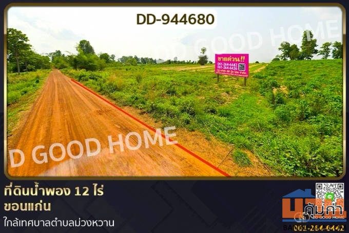DD-944680 ที่ดินน้ำพอง 12 ไร่ ขอนแก่น ใกล้เทศบาลตำบลม่วงหวาน