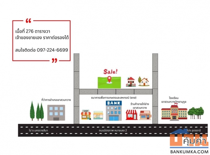 ขายที่ดินเปล่า ข้างที่ว่าการอำเภอเขาสวนกวาง จังหวัดขอนแก่น