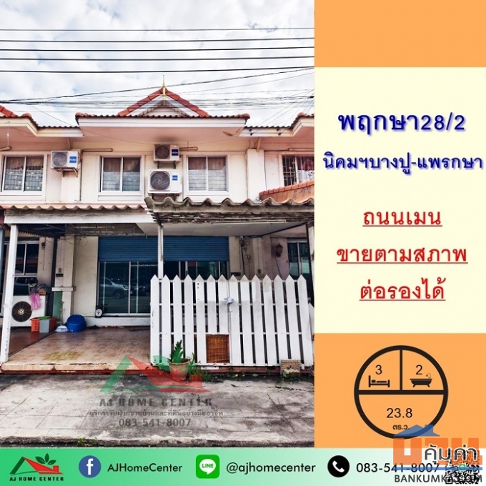 ขายทาวน์เฮ้าส์ 2 ชั้น หมู่บ้าน พันธ์พฤกษ์วิลล่า สุขุมวิท 78 สำโรง 18 ตร.ว ใกล้สถานีรถไฟฟ้า BTS ขาย 2,300,000 บาท