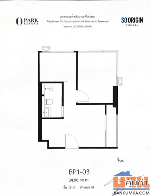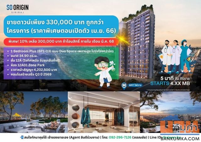 CM04334 ขายดาวน์ โซ ออริจิ้น เวลเนส ศิริราช So Origin Wellness Siriraj ถนนพรานนก ขายดาวน์ 390,000 บาท
