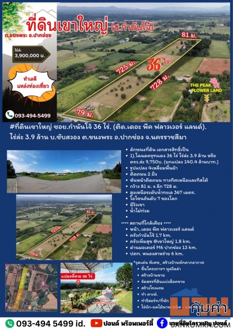 #ที่ดินเขาใหญ่ ซอย.กำนันโจ้ 36 ไร่. (ติด.เดอะ พีค ฟลาวเวอร์ แลนด์)ไร่ล่ะ 3.9 ล้าน บ.ซับสวอง ต.ขนงพระ อ.ปากช่อง จ.นครราชสีมา