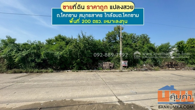 ที่ดินเปล่า ติดถนนพระราม2 เนื้อที่ 6-2-29 ไร่ อ.เมือง จ.สมุทรสาคร ขาย 38,500 บาท/ตร.วา
