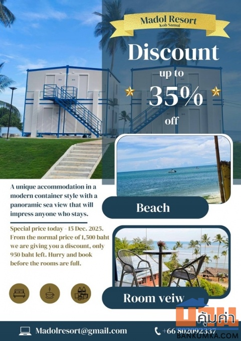 MADOL มาดลรีสอร์ท เกาะสมุย พักผ่อนชิลๆ วิวทะเลสุดฟิน ราคาสบายกระเป๋า โปรพิเศษ โทร. 0800292337