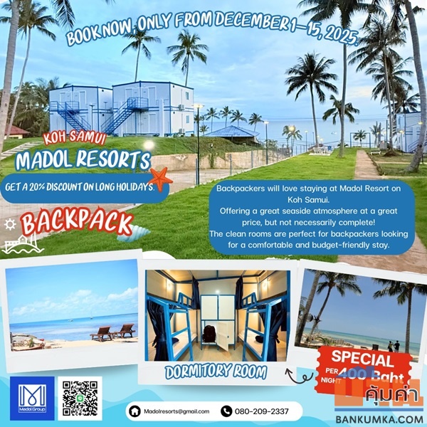 * แบบที่ 2 เป็นห้องรวมสำหรับ backpack ลดราคาพิเศษเหลือ 400 บาทในช่วง 1-15 ธันวาคม