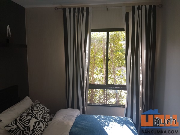 ห้องขนาด 47 ตรม. ตึก A ชั้น 1 เดินเข้ามาจากหน้าโครงการเป็นตึกแรกเดินไม่ไกล เป็นห้องมุมที่มองออกไปจะเห็นทางเข้าโครงการ รอบๆห้องมีต้นไม้ปลูกเป็นรั้วสวยงาม ห้องแต่งครบพร้อมเฟอร์นิเจอร์เข้าอยู่ได้เลยครับ