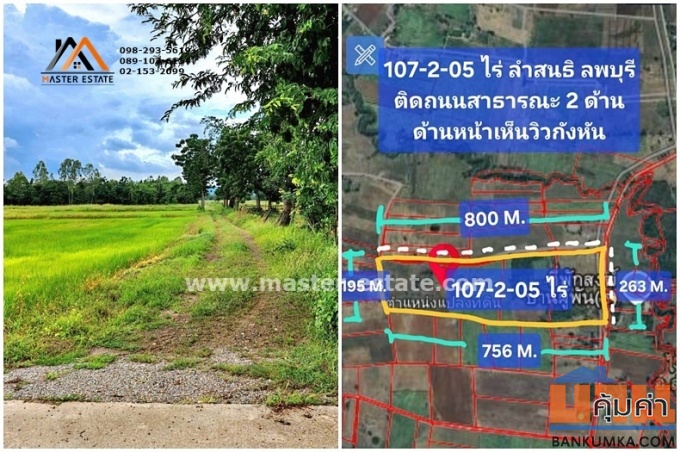 ที่ดินเปล่า 107-2-05 ไร่ ลำสนธิ ลพบุรี ติดถนนสาธารณะ 2 ฝั่ง ขายถูก วิวด้านหน้าเห็นกังหันลม สูงจากระดับน้ำทะเล 85 M.