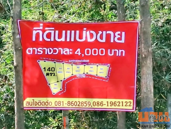 (สำหรับพื้นที่ 140 ตารางวา มีบ้านหลังหนึ่งตั้งอยู่ มีทะเบียนบ้านด้วย น้ำ ไฟ เข้าได้ ราคาบ้าน 200,000 บาท ลดเหลือ 100,000 บาท)