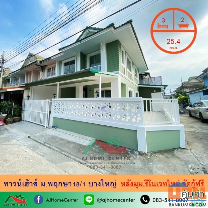 พฤกษา18 ซอยแก้วอินทร์ บางใหญ่ นนทบุรี ทาวน์เฮ้าส์หลังใหญ่ 35ตารางวา 5นอน 3 น้ำตรงข้ามเซ็นทรัลเวสเกต รีโนเวทพร้อมอยู่ ขาย 2,250,000 บาท