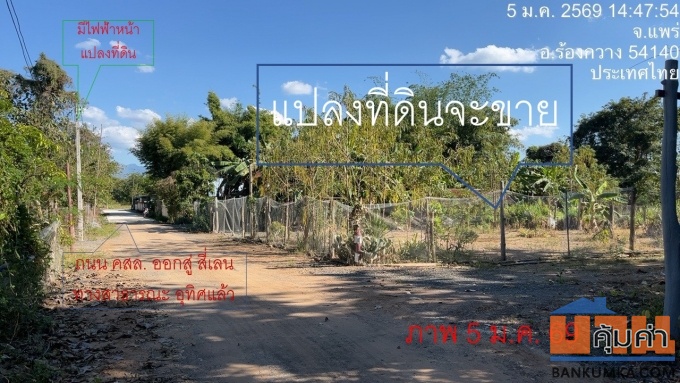 ขายที่ดินผ่อน ดอกเบี้ย 0% ใกล้ไฟแดง รพ.ร้องกวาง จังหวัดแพร่