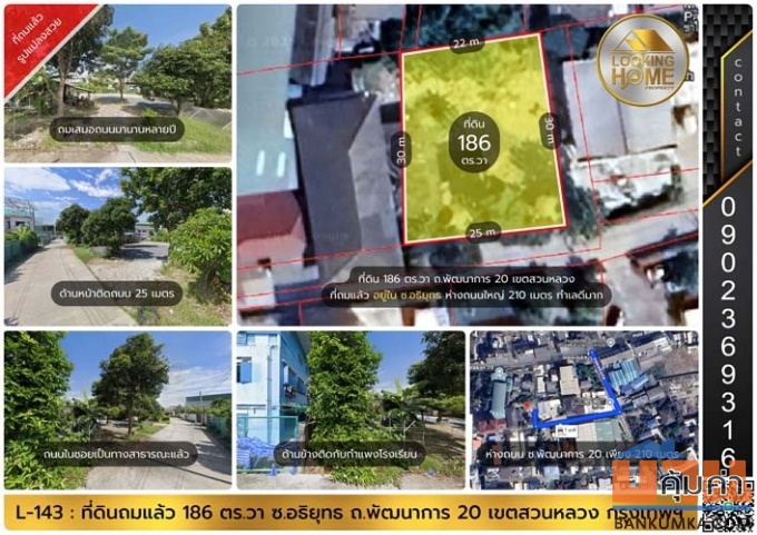 - ที่ดินถมแล้ว สูงเสมอถนน ทำเลดี เงียบสงบ ไม่พลุกผล่าน