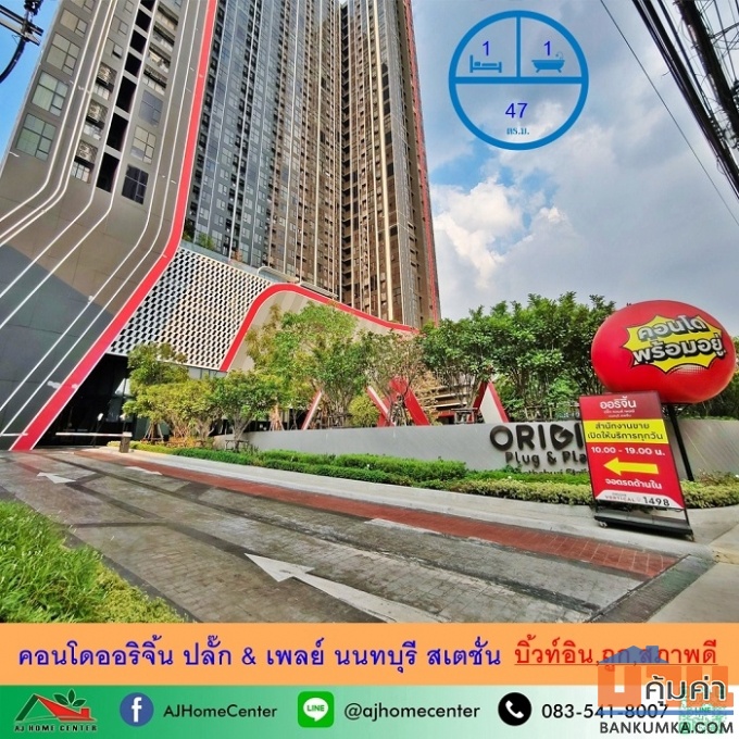 ขายถูก คอนโดออริจิ้น ปลั๊ก & เพลย์ นนทบุรี สเตชั่น ขนาด47ตรม. ชั้น14 บิ้วท์อินพร้อมอยู่