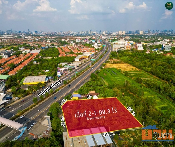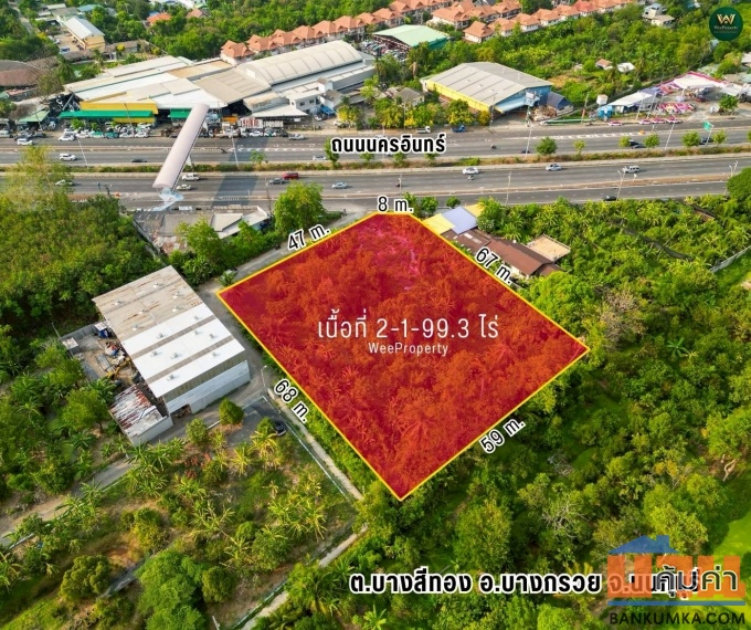 Prime land located on Nakhon In Road, one of the main routes connecting Bangkok and Nonthaburi. Surrounded by quality residential developments and large communities, ideal for both commercial and residential projects.