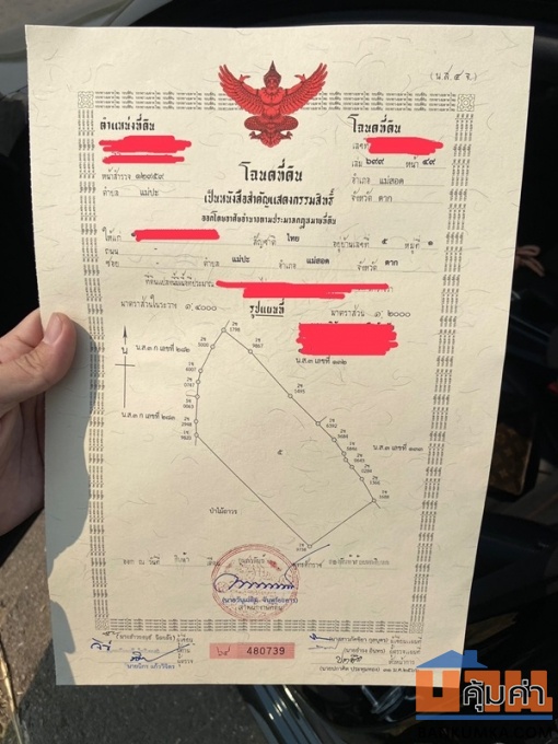 ด่วน!! ขายที่ดินแม่สอด-ห้วยกระโหลก 42 ไร่ ที่มีโฉนด นส.4 ครุฑแดง แปลงเดียวในย่านนี้ โทร 083-5437789