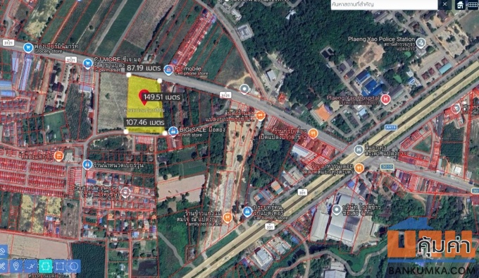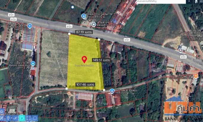 #ที่ดินสวยหน้ากว้าง ติดถนน 3121 ประมาณ 90 เมตร ลึกประมาณ 160 เมตร หน้ากว้างใกล้โรงพยาบาลแปลงยาว