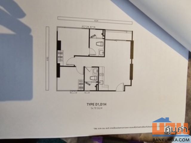 -ห้องเลขที่ 4301 ชั้น 43 เนื้อที่ 54.78 ตร.ม 2 ห้องนอน 2 ห้องน้ำ ห้องมุม