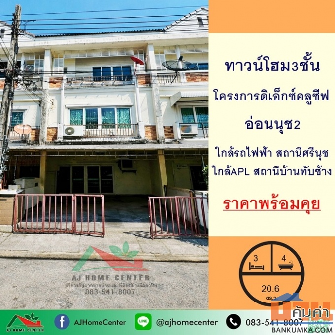 ขายทาวน์โฮม3ชั้น 20.6ตรว. โครงการ ดิ เอ็กซ์คลูซีฟ อ่อนนุช2 ใกล้รถไฟฟ้าทำเลดี ราคาพร้อมคุย