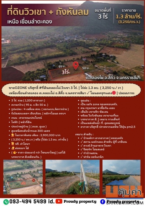 Ozone บริสุทธิ์ #ที่ดินคลองไผ่.วิวเขา 3 ไร่. | 3.9 ลบ. ( 3,250 บ./ วา )เหนือเขื่อนลำตะคอง อ.สีคิ้ว