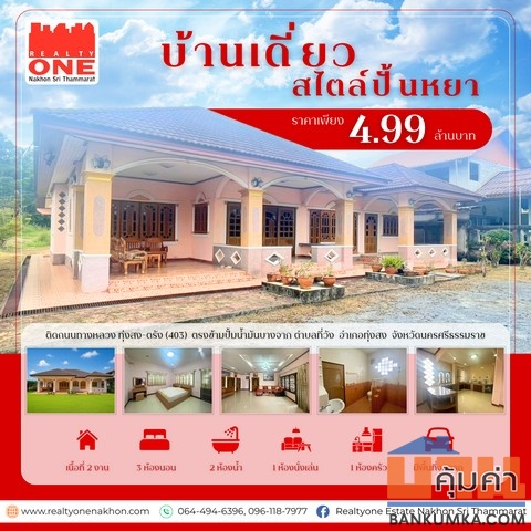 บ้านสวย พร้อมอยู่ ทำเลดี ใกล้เมืองทุ่งสง บนเนื้อที่ 200 ตารางวา