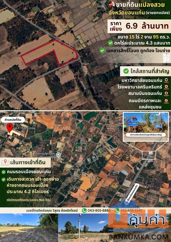 ด่วน ขายที่ดินสำหรับทำหมู่บ้าน 15 ไร่ 3 งาน ถนนมะลิวัลล์ ซอย โสกเดือนห้า ถนน คอนกรีต จ.ขอนแก่น(ขายยกแปลง)